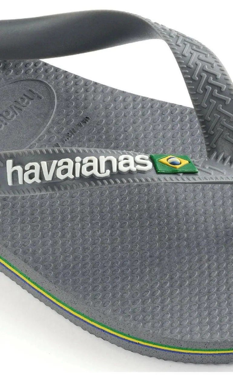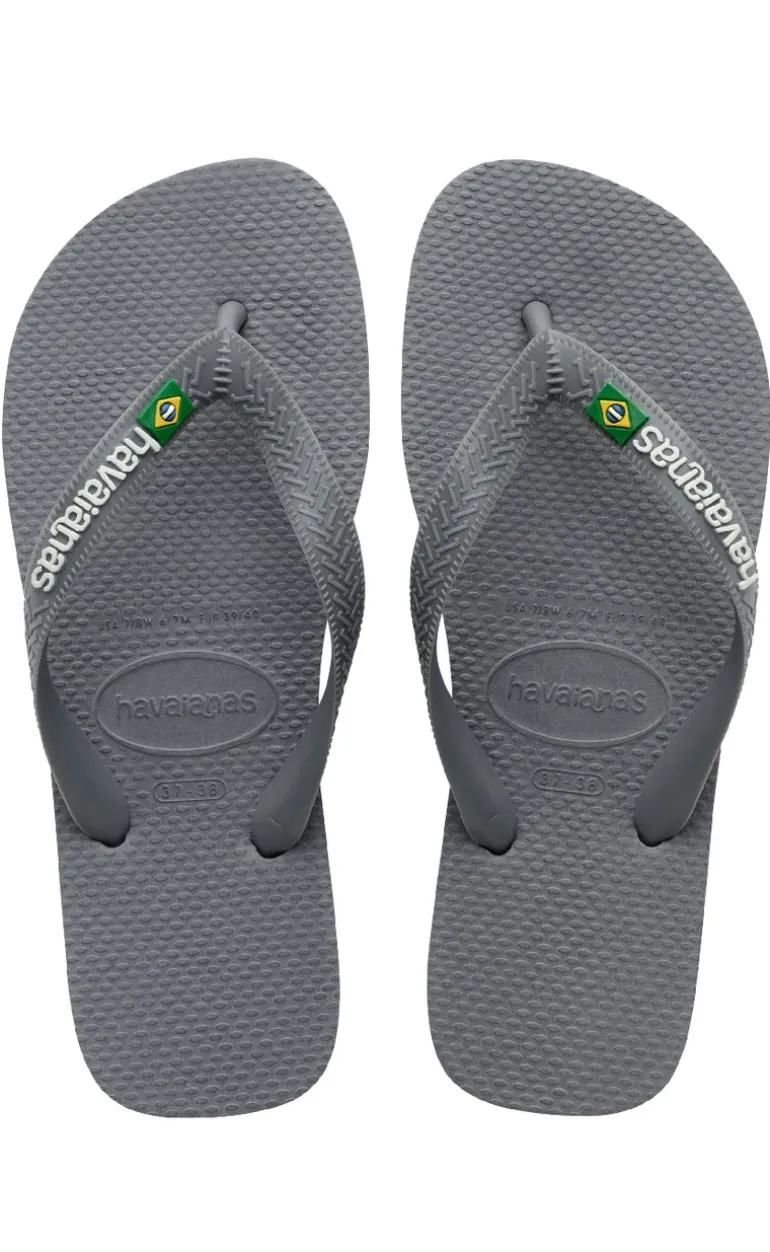 Den populære badesandal fra Havaianas i grå, med det brasilianske logo på remmen.