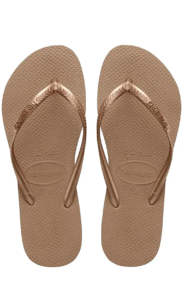 Den populære badesandal fra Havaianas i rose gold, med en smal pasform.