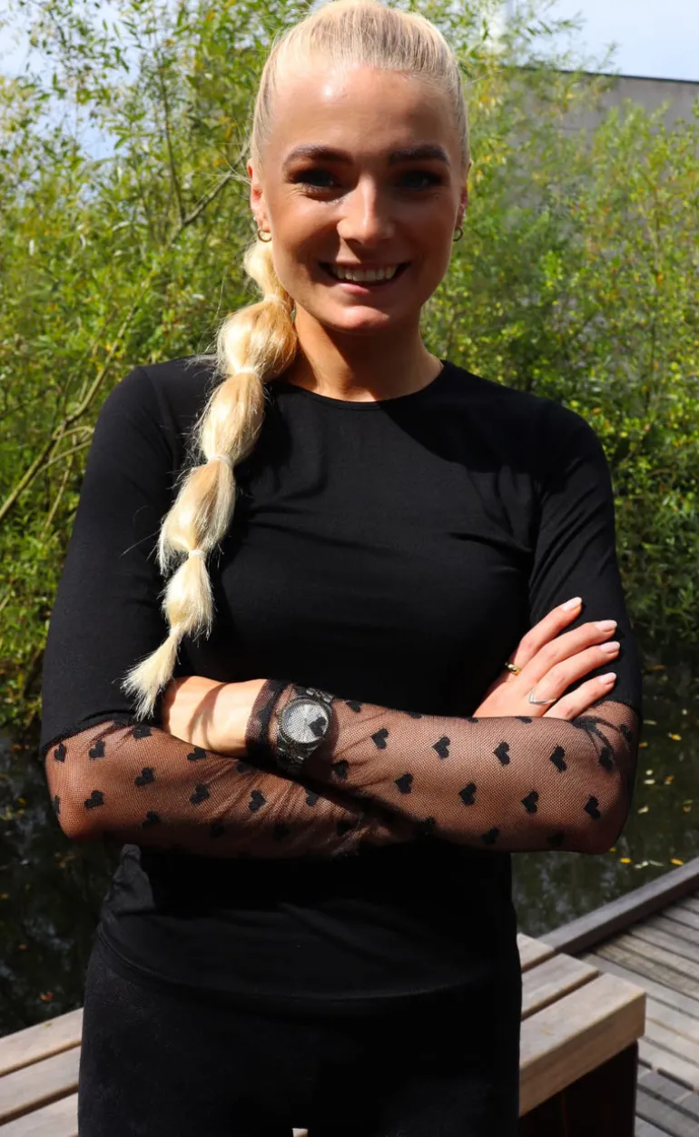 Style nummer: 21348-ISA-LS-LACE-SLEEVE-BLOUSE