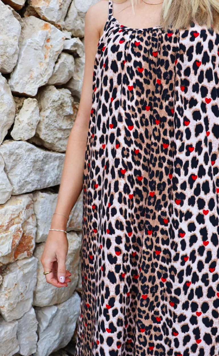 Luftigt kjole fra Liberte i et leoprint med røde hjerter.