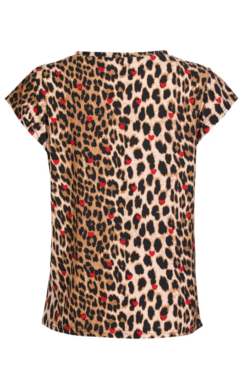 Afslappet t-shirt fra Liberte i et leoprint med røde hjerter.