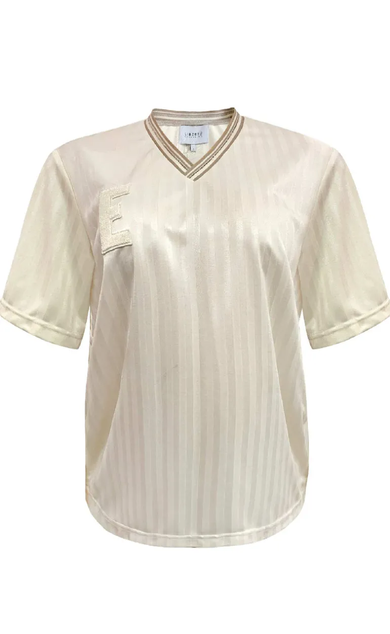 Sporty t-shirt fra Liberte i creme hvid, med korte ærmer og en v-udskæring.