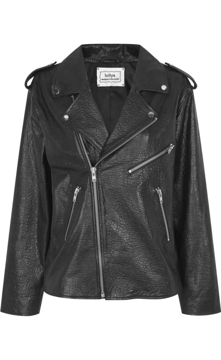 Sort og klassisk læderjakke fra Lollys Laundry i sort.