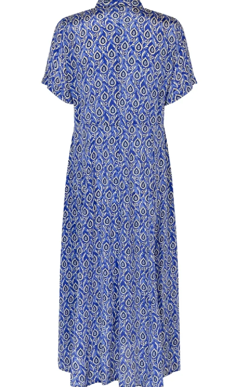 Elegant skjortekjole fra Lollys Laundry i et blåt paisleyprint.