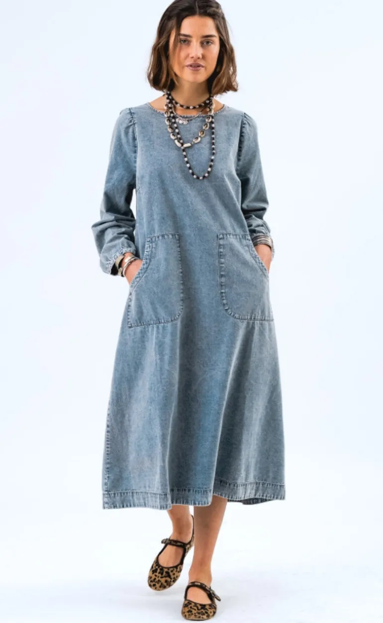 Denim kjole fra Lollys Laundry i en dejlig behagelig kvalitet.