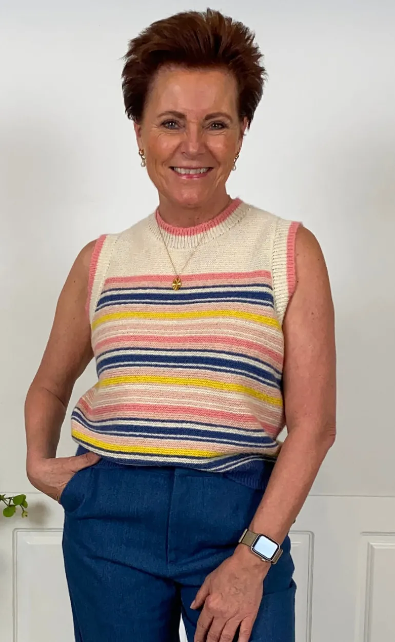 Flot strik vest fra Lollys Laundry i et stribet print.