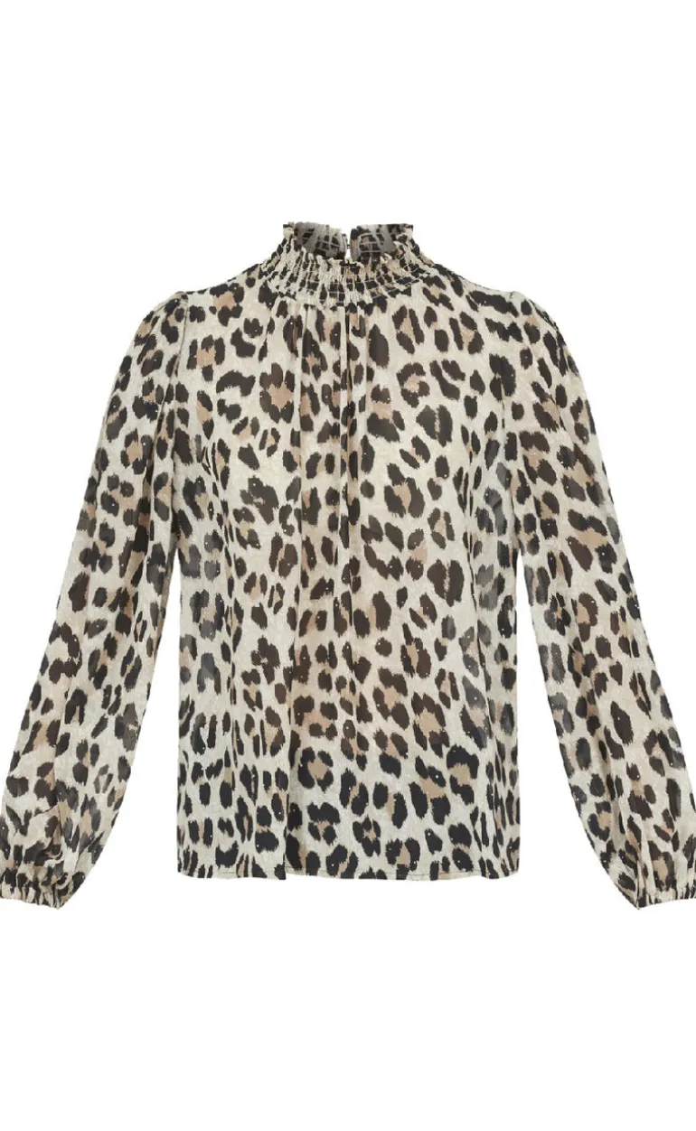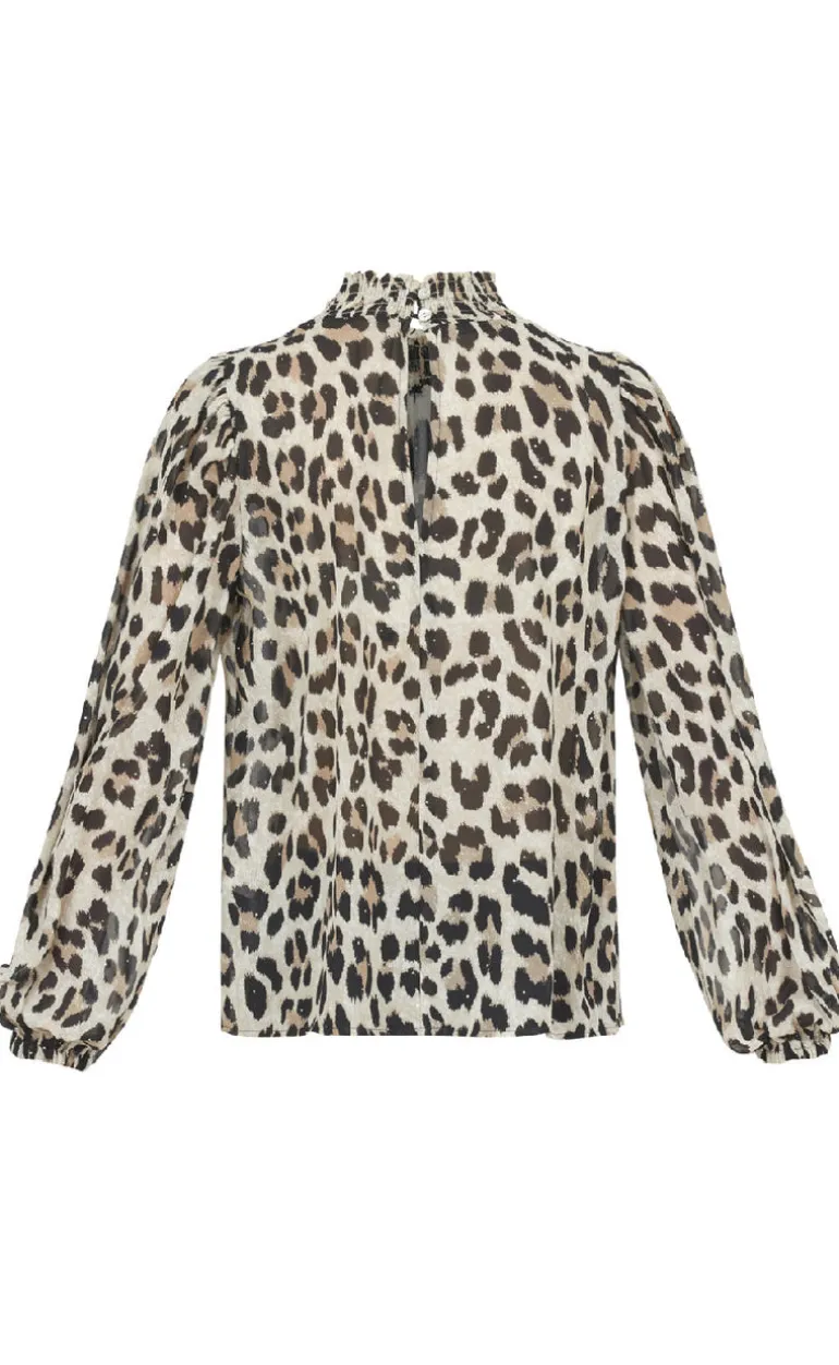 Feminin leopard bluse fra Love & Divine, med små rhinsten.