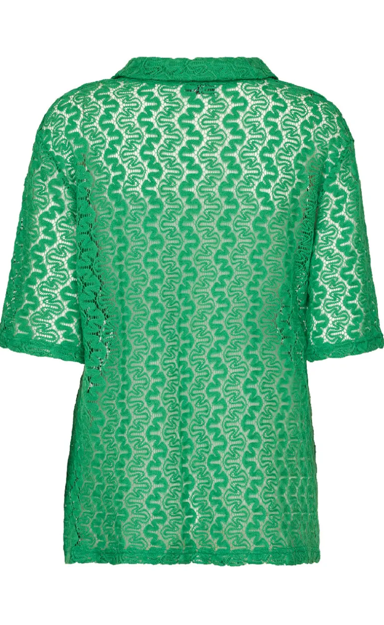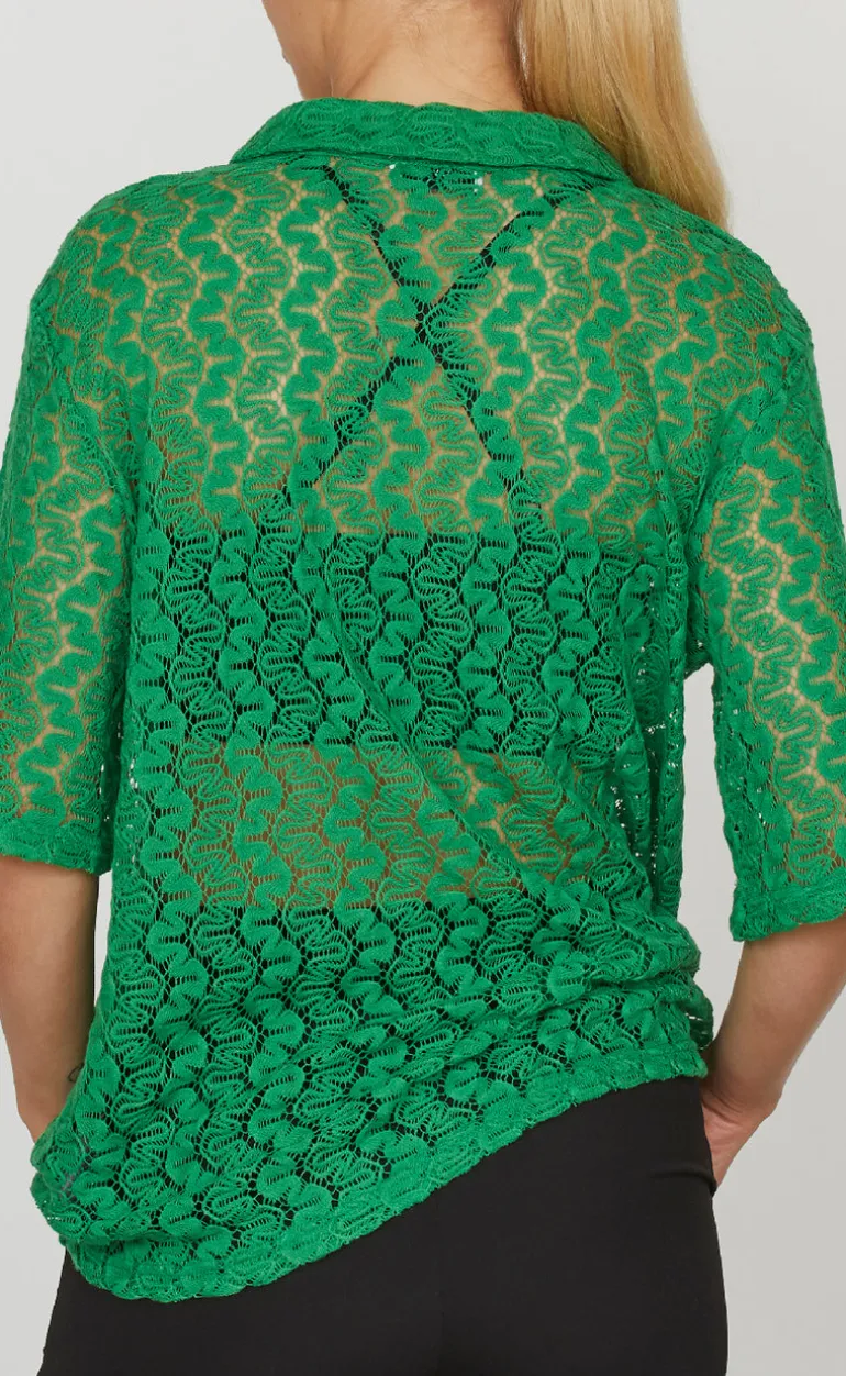 Grøn bluse fra Love & Divine i en let gennemsigtig kvalitet.