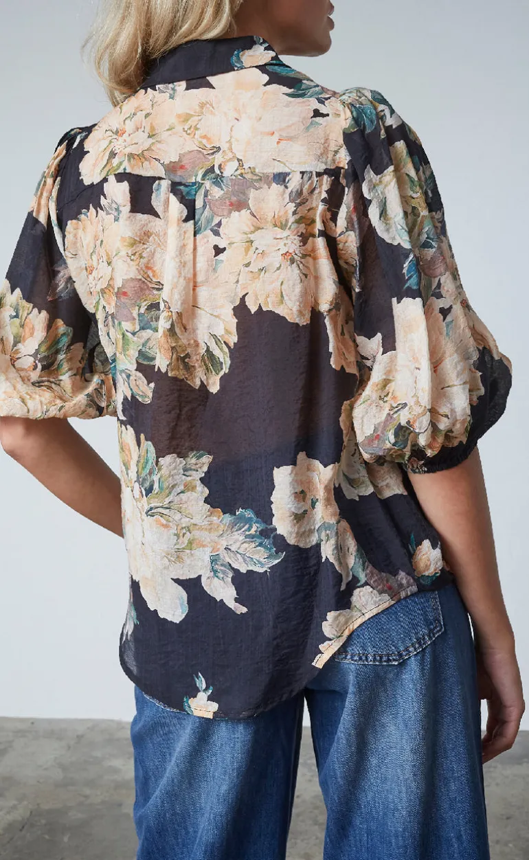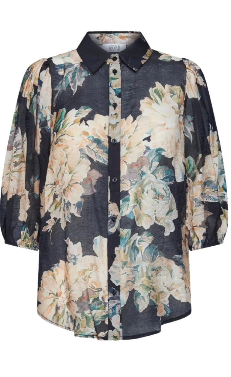 Sød skjortebluse fra Love & Divine i et sort blomsterprint.