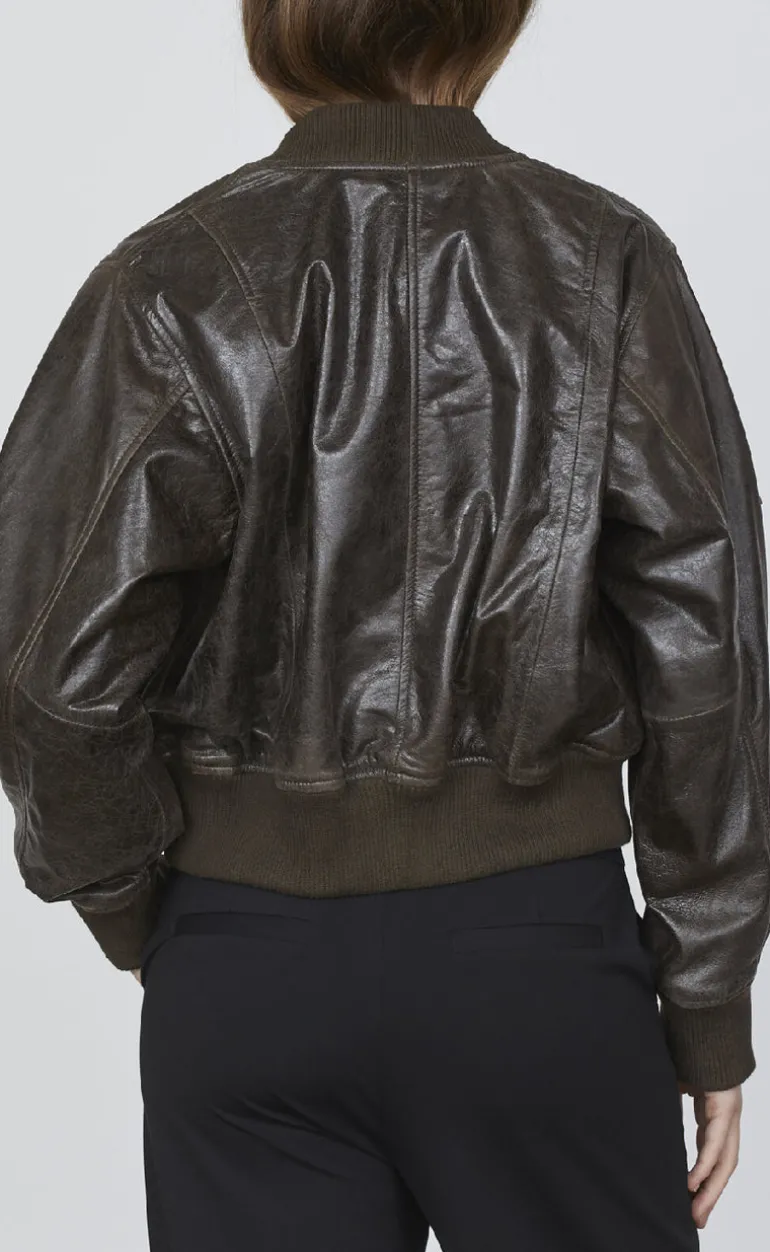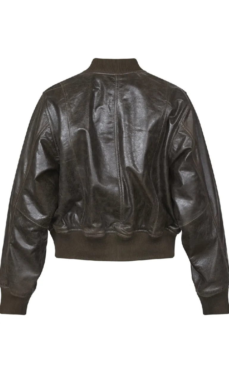 Praktisk bomberjakke fra Love & Divine i en chokolade brun farve.
