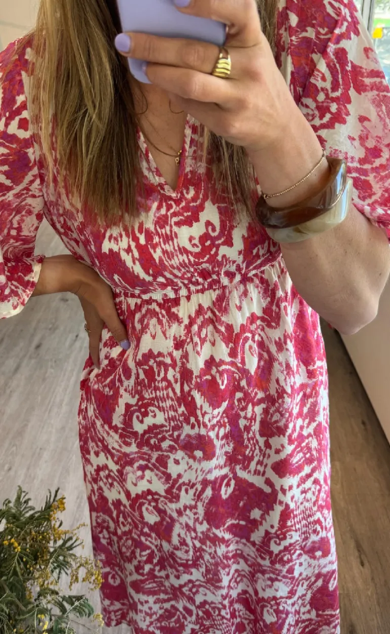 Sød og feminin kjole fra Love & Divine i et rødt print.
