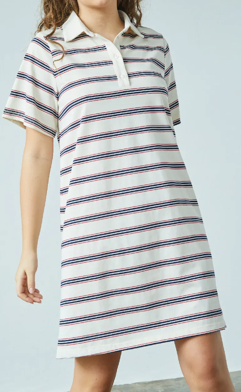 Stribet, polo kjole fra Love & Divine i creme hvid.