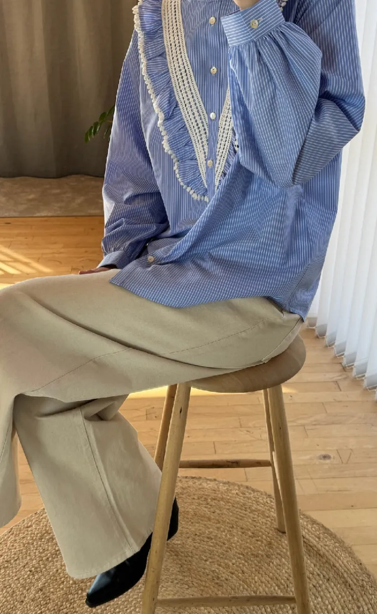 Skjorten har mange smukke detaljer, er gennemknappet og har blondedetaljer.