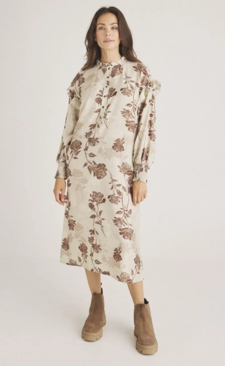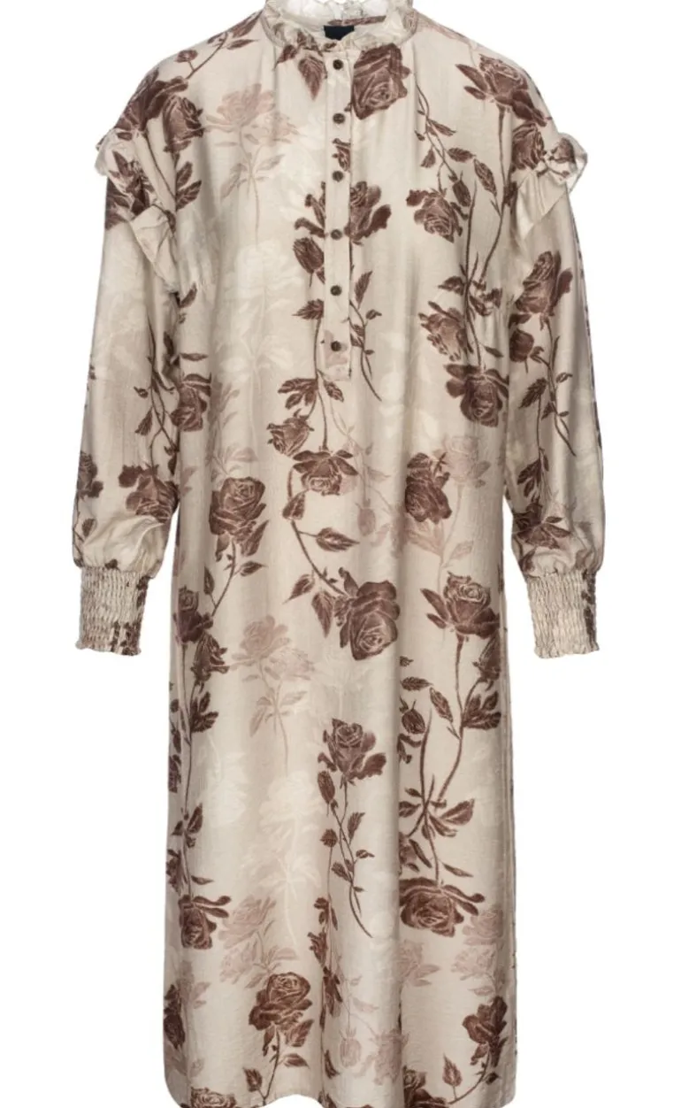 Dene kjole har lange ærmer, samt et flot blomster mønster.