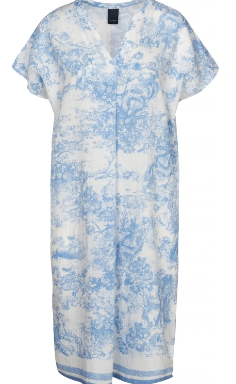 Let og luftig kjole fra Luxzuz i et blåt-hvidt print.