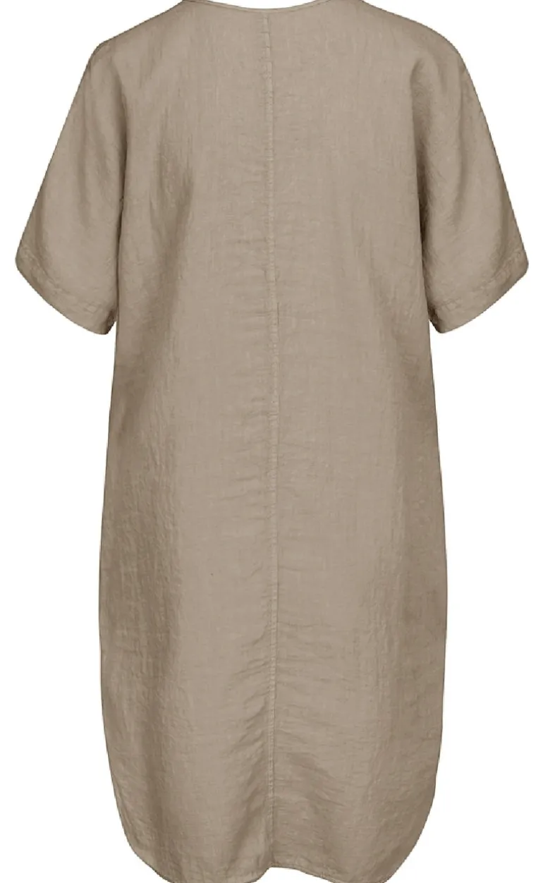 Lækker hør kjole fra Luxzuz i brun.
