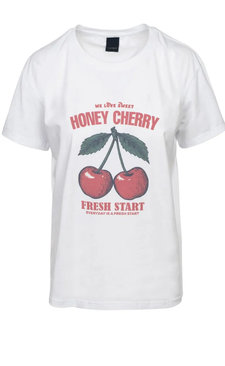 Cool t-shirt med kirsebær print på forsiden. Blød og behagelig kvalitet og et stilfuldt udtryk.