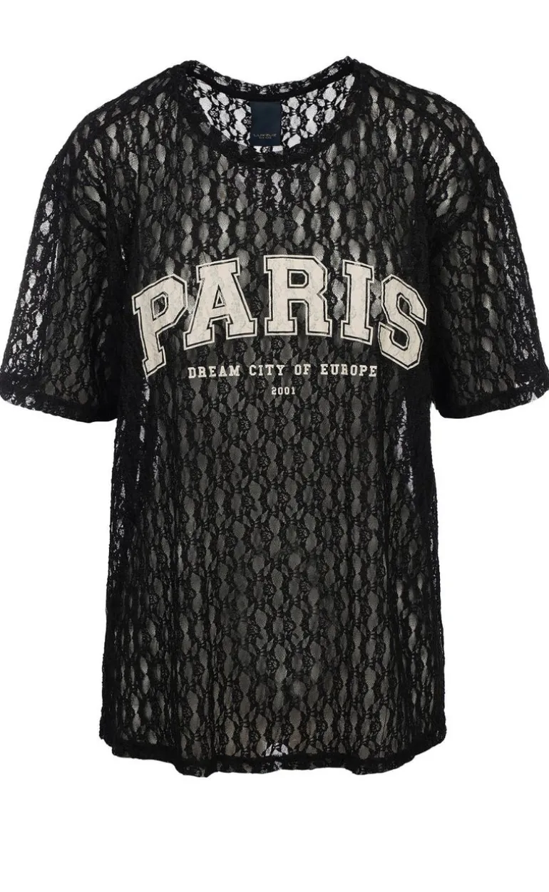 Cool t-shirt fra Luxzuz med blonder. Korte ærmer og print på forsiden med teksten ‘Paris’.