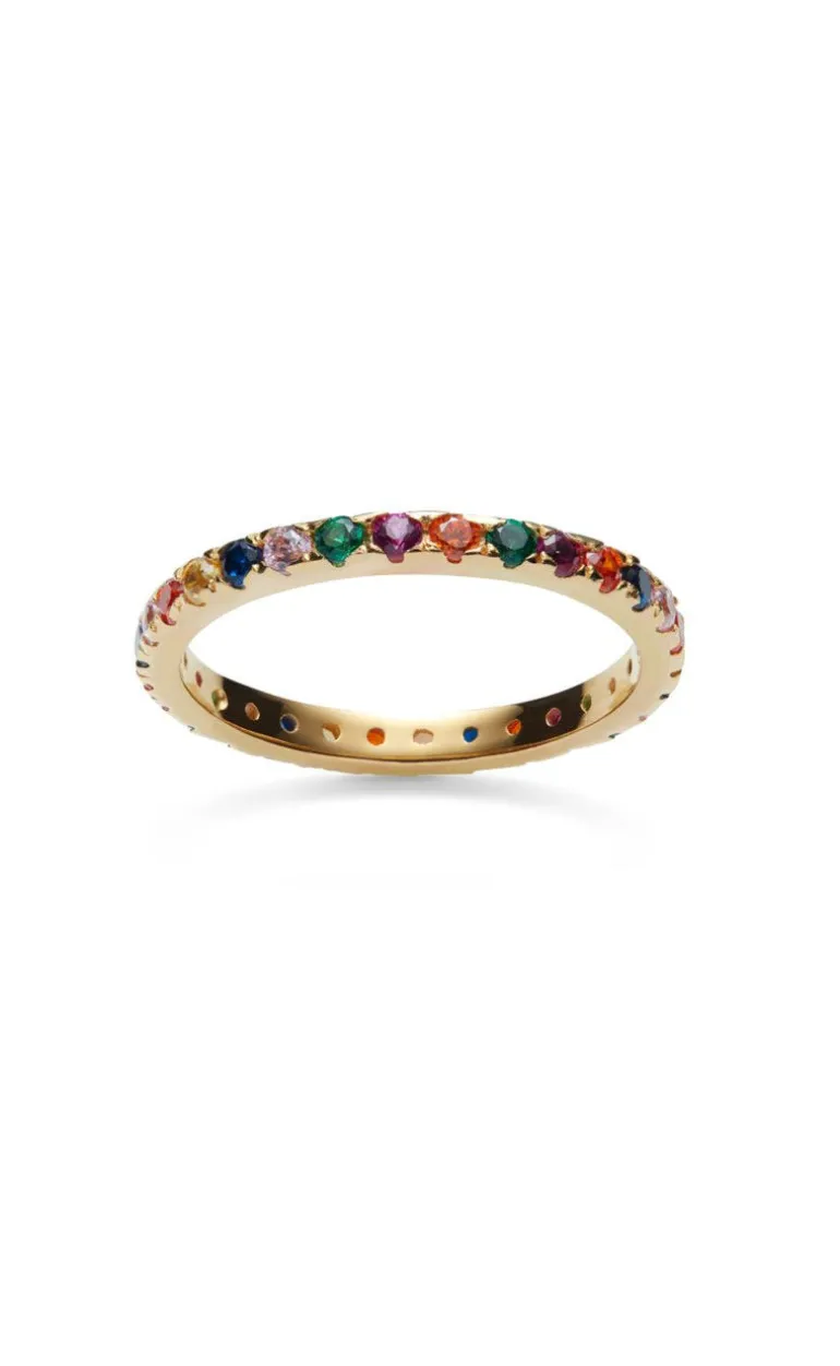 Tynd ring fra Maanesten i guld, med forskellige farvede sten.