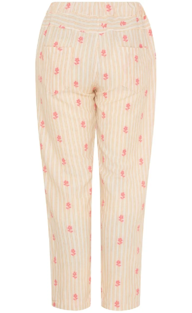 Flotte bukser fra Marta Du Chateau i et stribet print med små, broderede blomster.