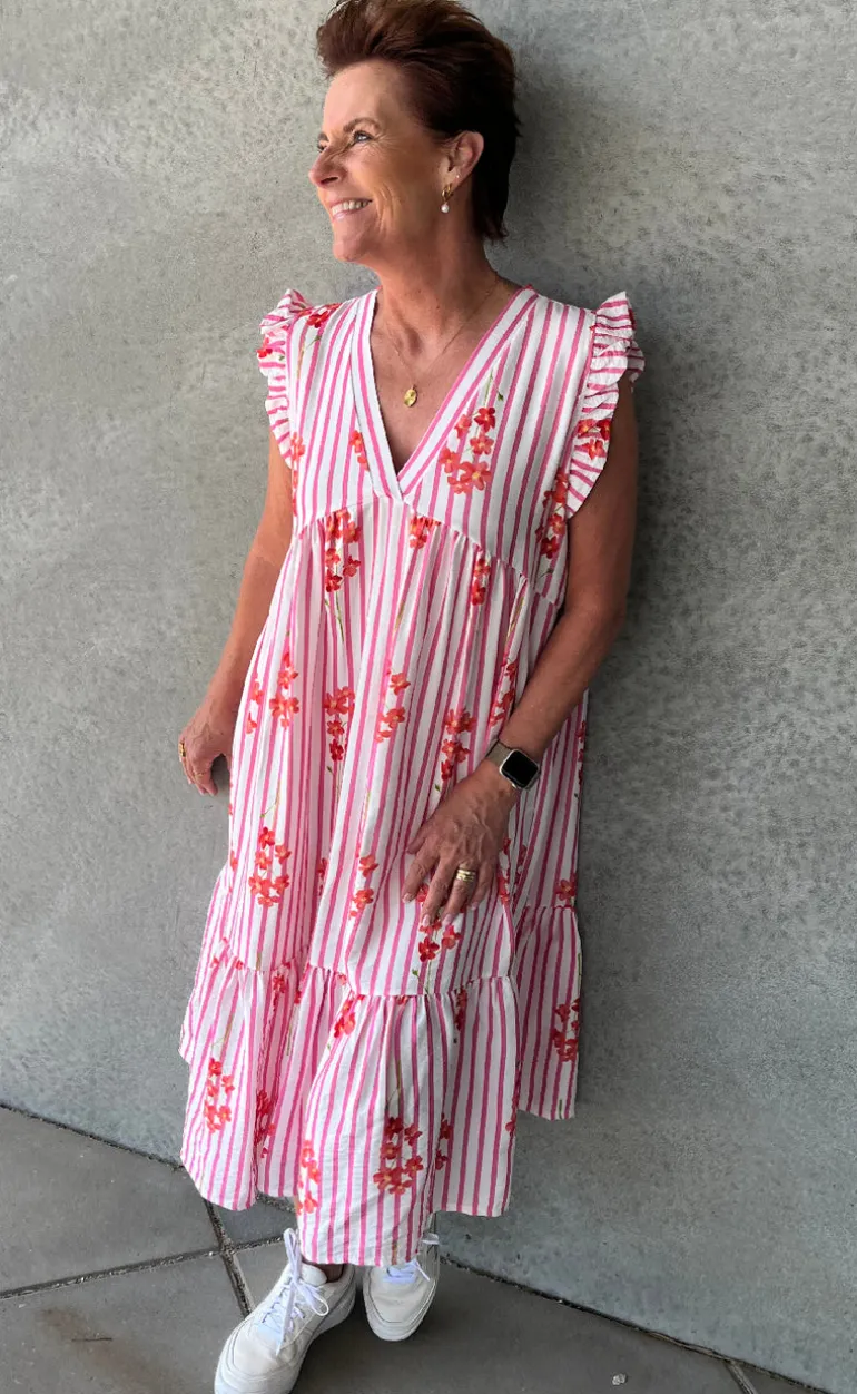 Smuk og feminin kjole fra Marta Du Chateau i et lyserødt print.
