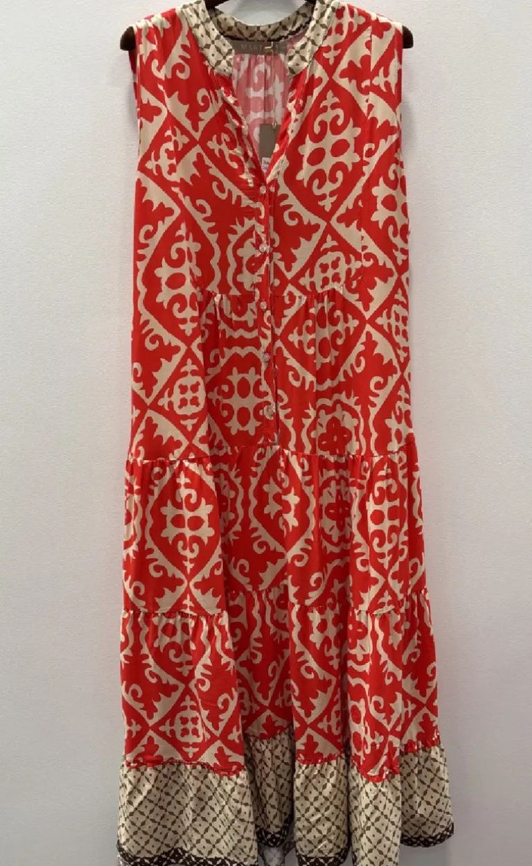 Sød, ærmeløs kjole fra Marta Du Chateau i et rødt print.