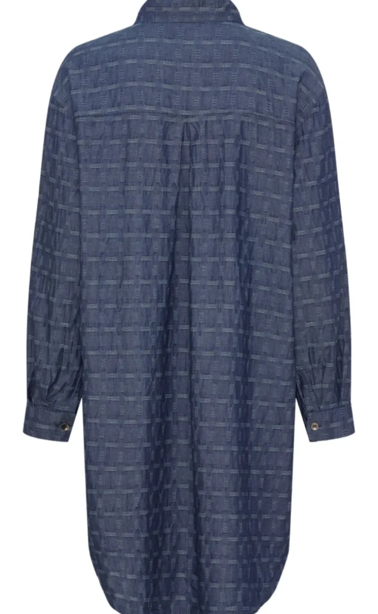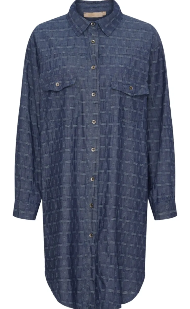 Flot kjole fra Marta Du Chateau i et blåt ternet print.
