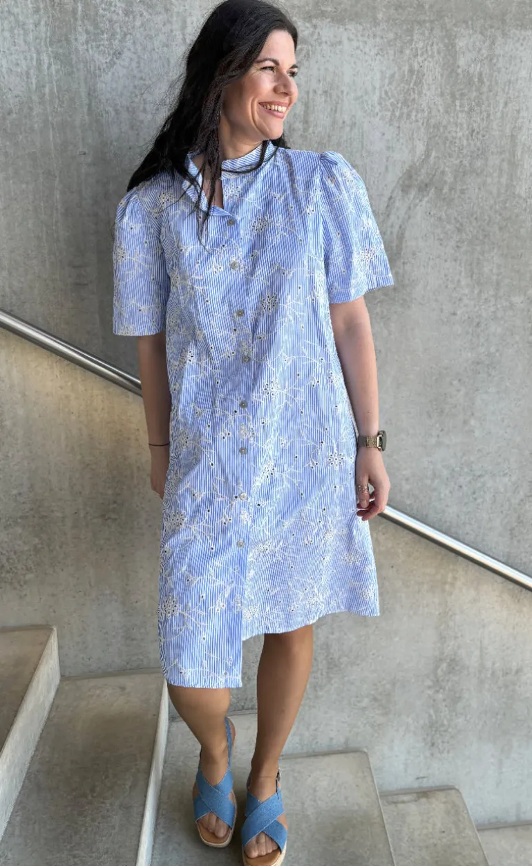 Smuk kjole fra Marta Du Chateau i et flot blåt print.