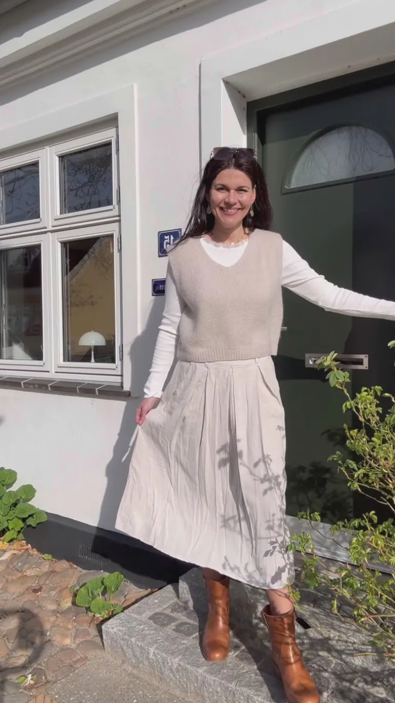 Sød og enkel nederdel fra Marta Du Chateau i beige, fremstillet i en dejlig hør kvalitet.