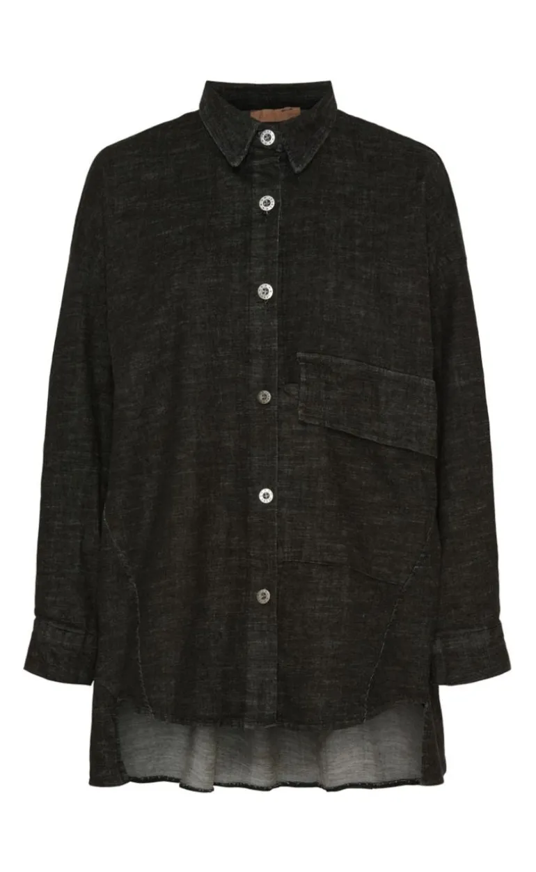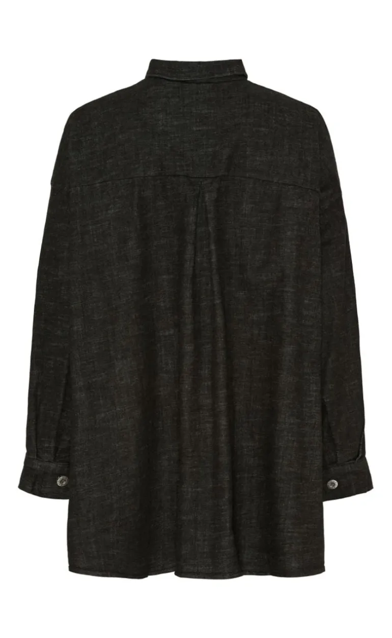 Fin sort skjorte, med krave og knapper hele vejen ned.