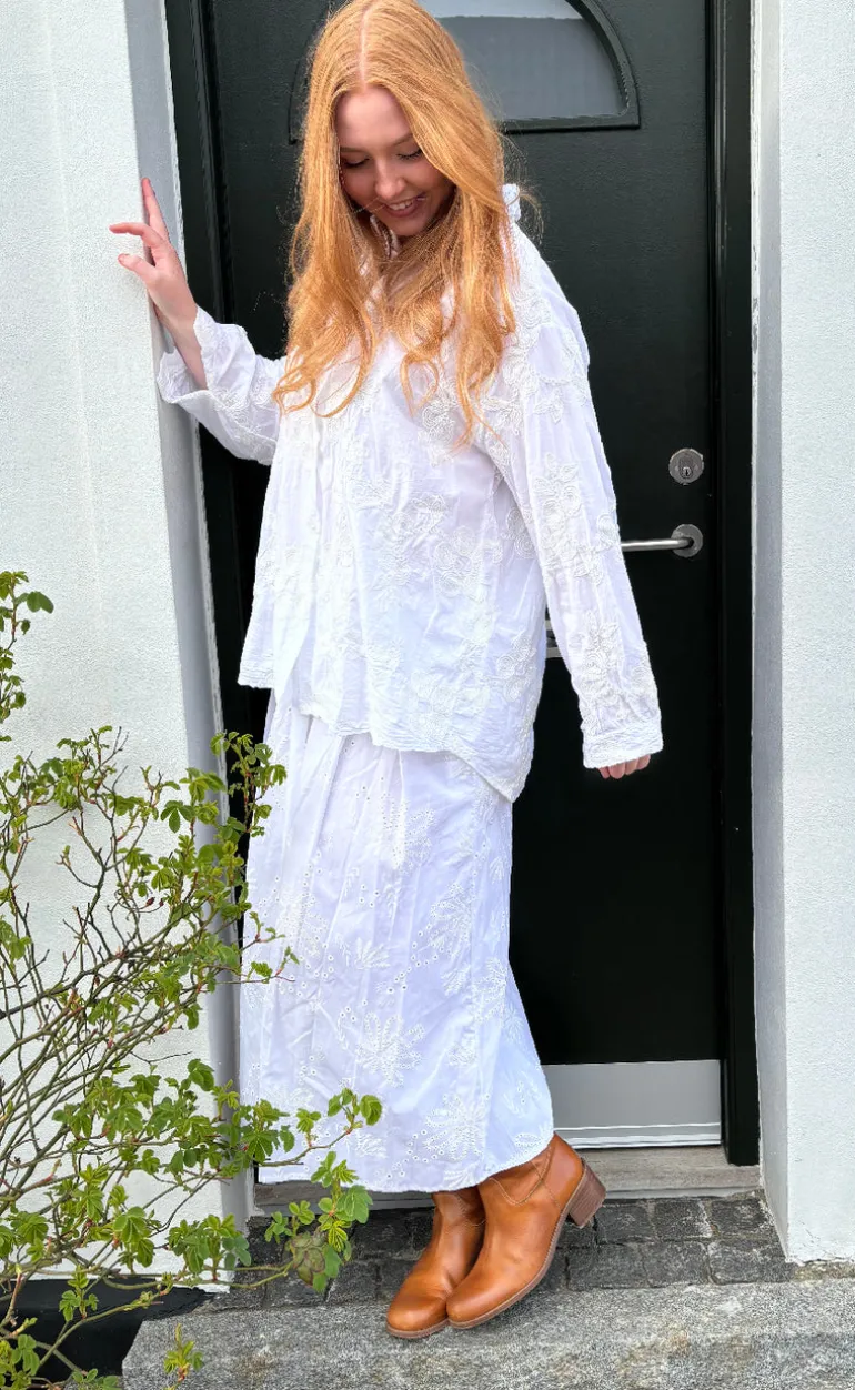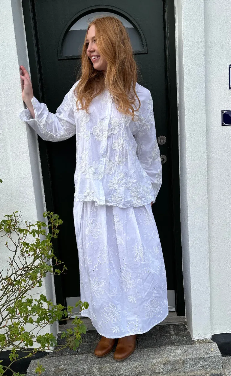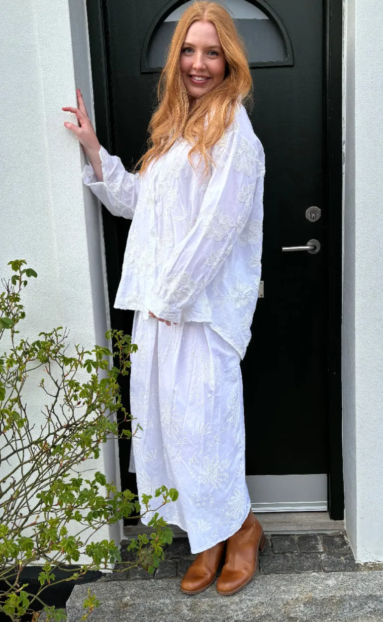 Sød og feminin skjorte fra Marta Du Chateau i hvid med fine broderi detaljer.