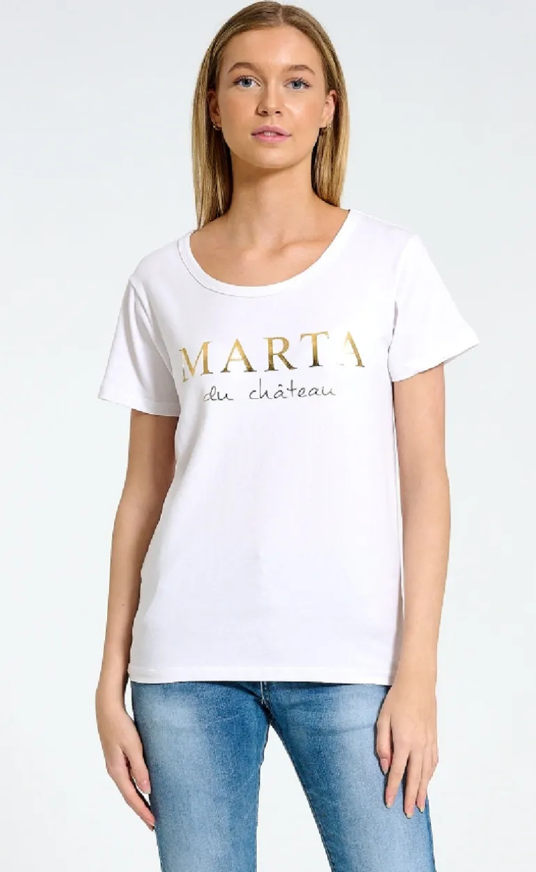 Sød t-shirt fra Marta Du Chateau i hvid, med guld skrift på brystet.