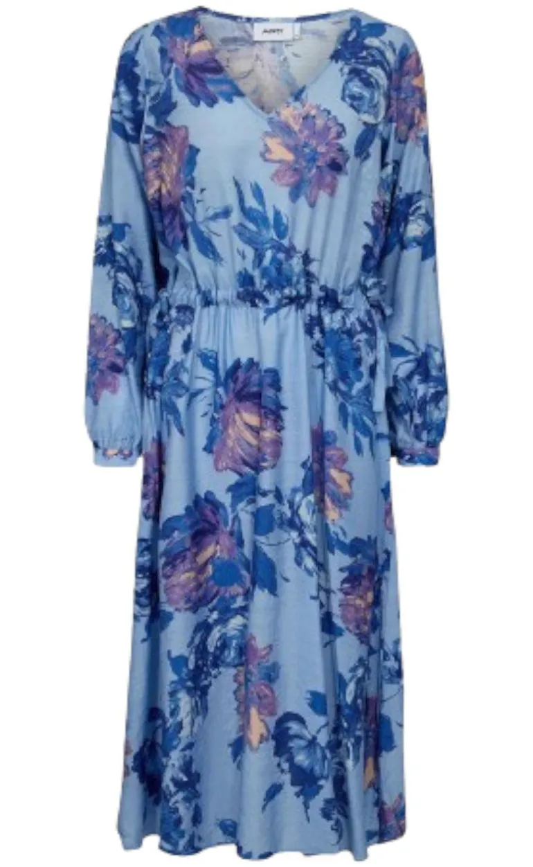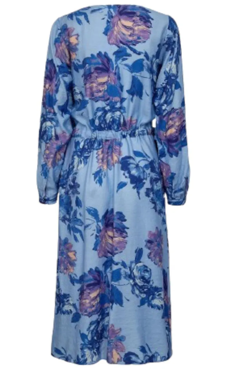 Kjolen er tætsiddende, men med meget stræk. Den har lange ærmer og en smart udskæring ved skulderen.