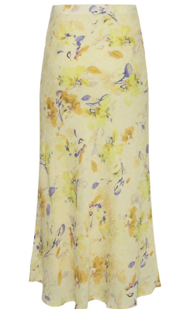 Maxi satin nederdel fra Moves i gul.