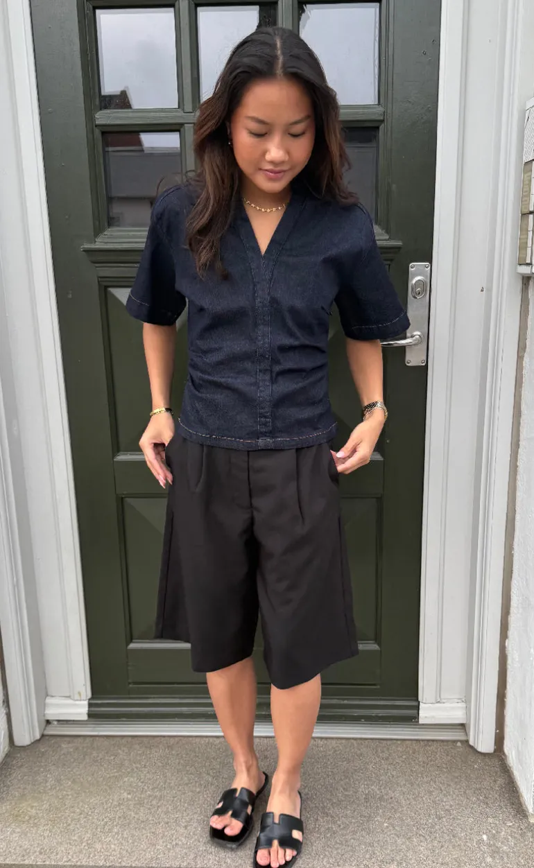 Flot denim bluse fra Neo Noir i mørkeblå.