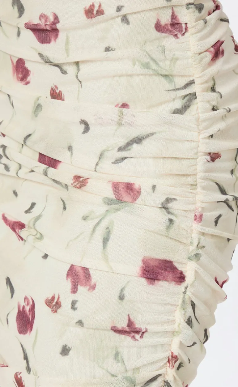 Maxi mesh kjole fra Neo Noir med rynk ned langs sidesømmen og et blomstret print.