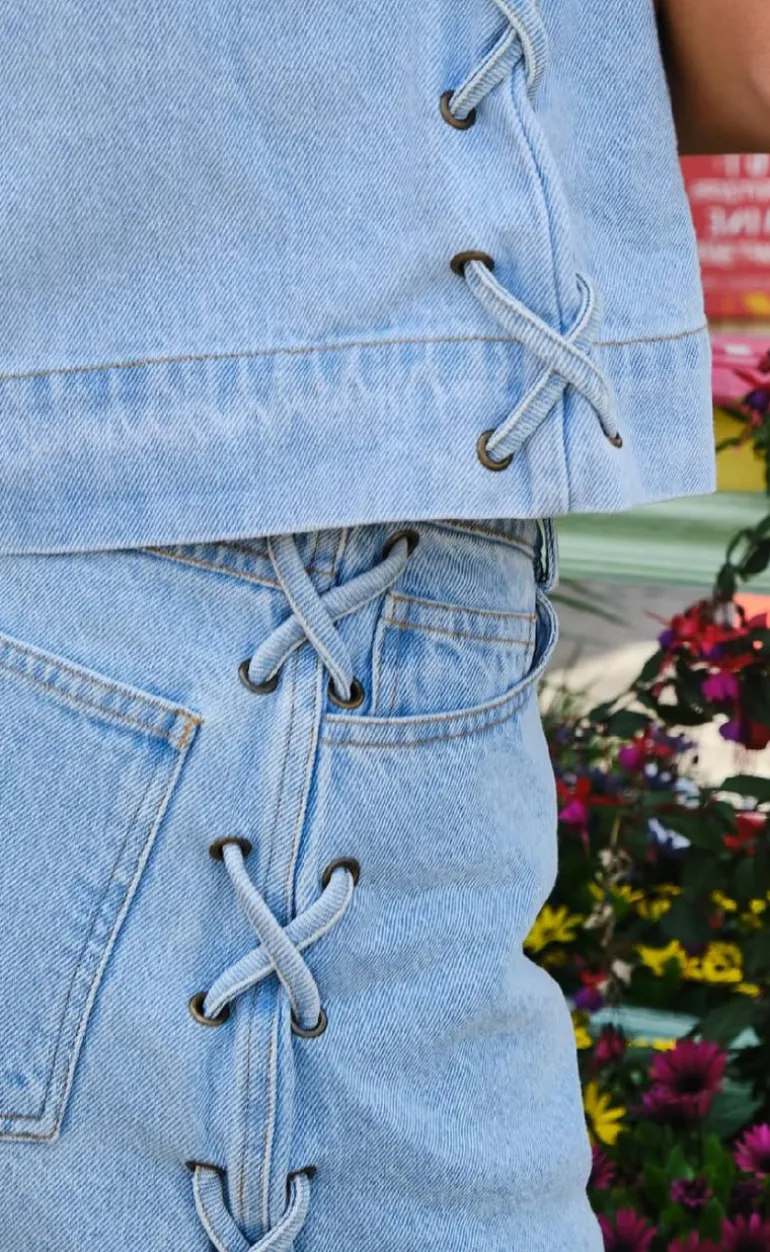 Mini denim nederdel fra Neo Noir i lyseblå.