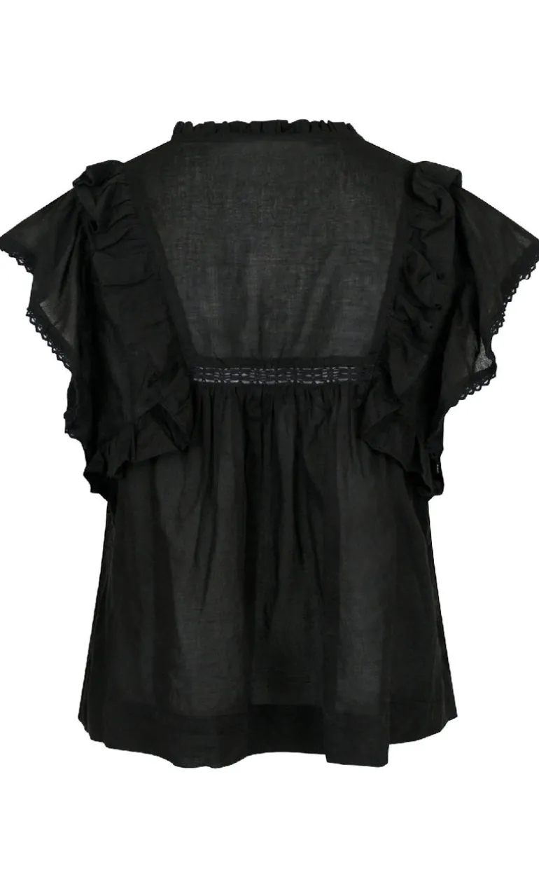 Smuk og populær top fra Neo Noir i sort, med flæser og indsatte bånd.