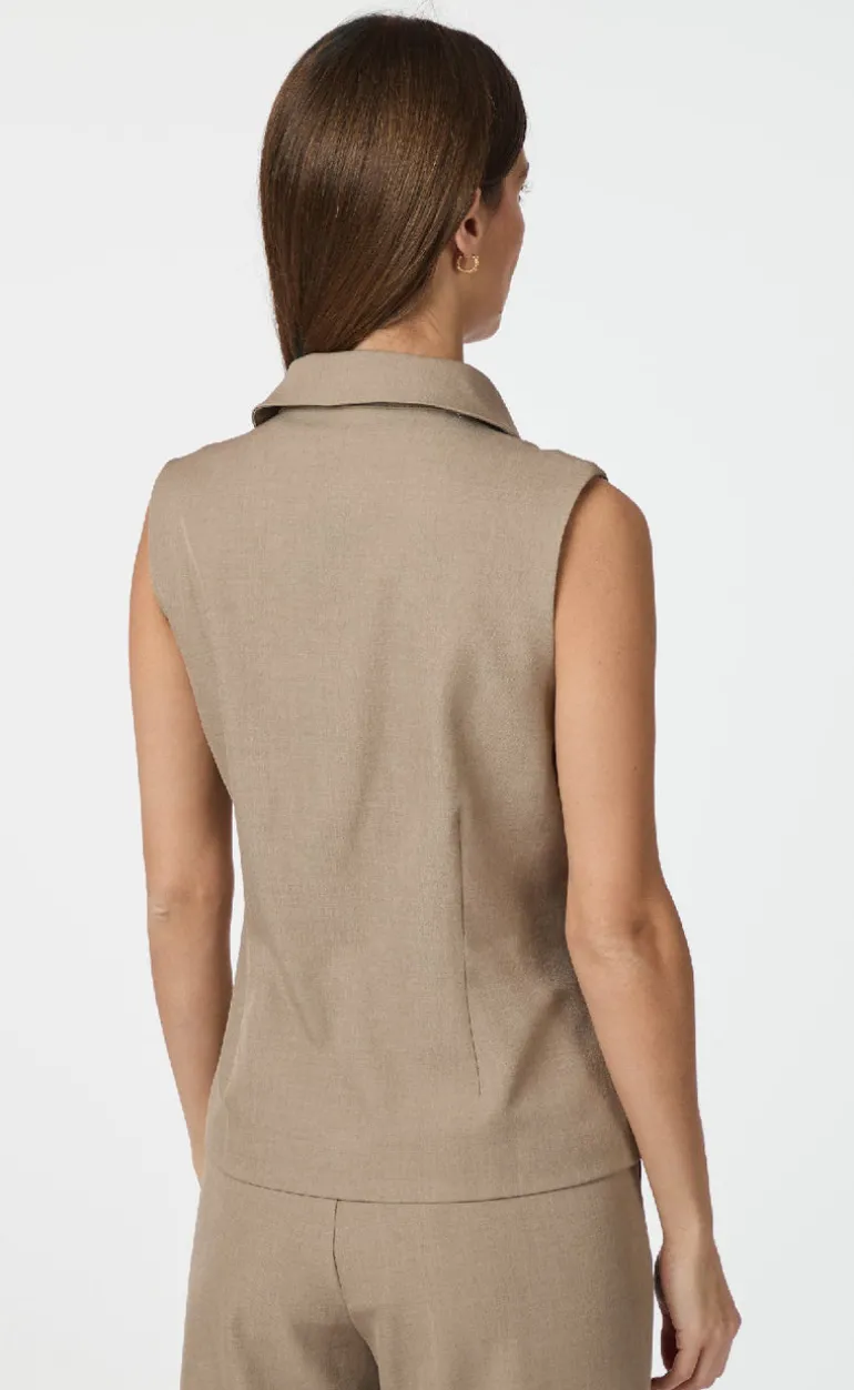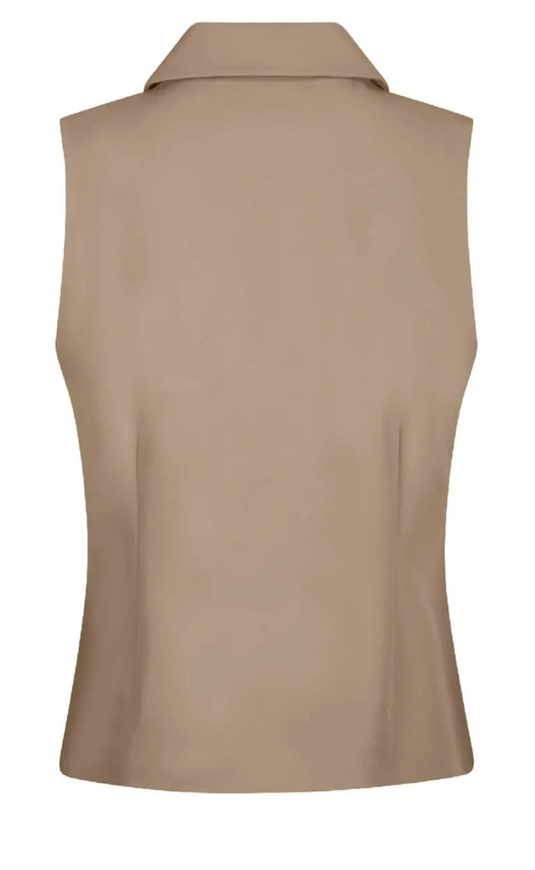 Brun, ærmeløs vest fra Neo Noir med lynlås og en krave.