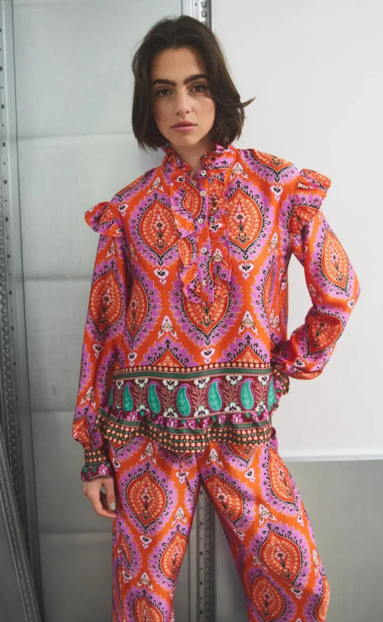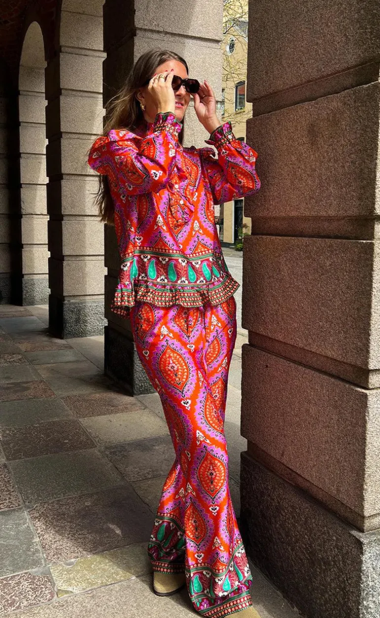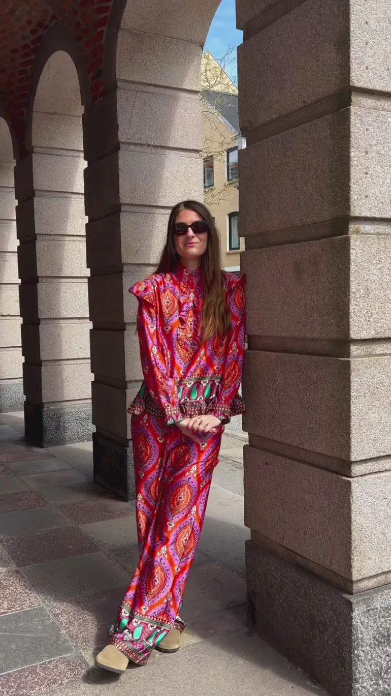 Flotte bukser fra Noella i et lyserødt print.