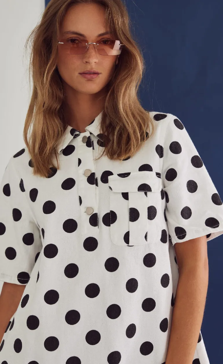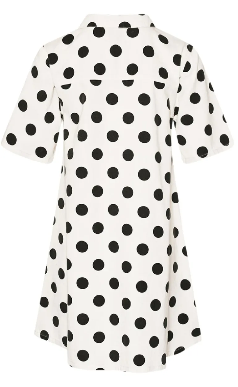 Smuk mini kjole fra Noella i hvid, med sorte prikker.