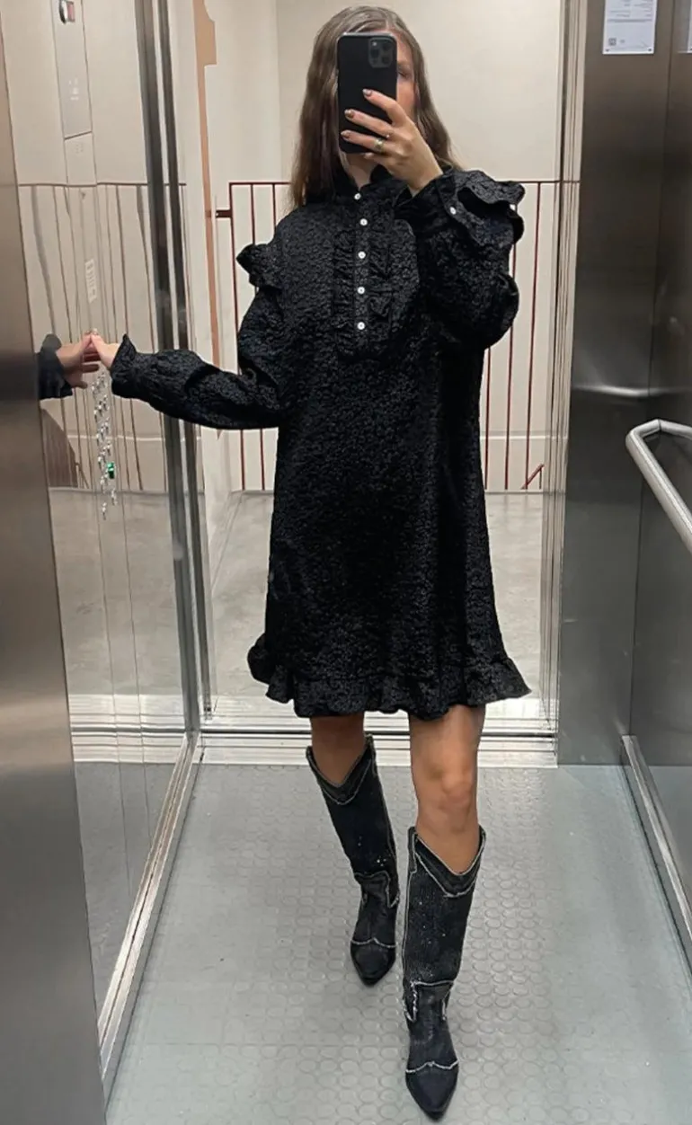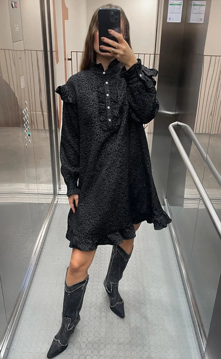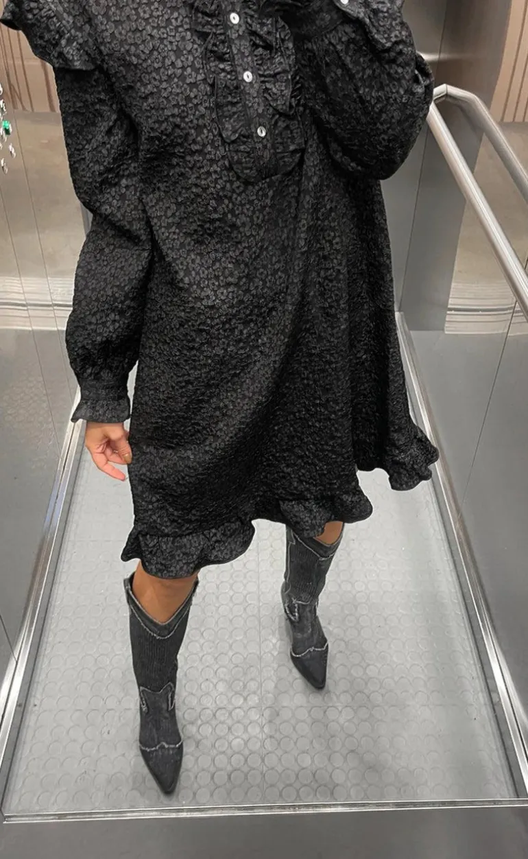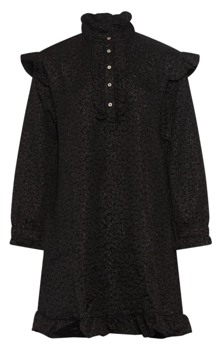 Feminin kjole fra Noella i sort med et diskret blomsterprint.