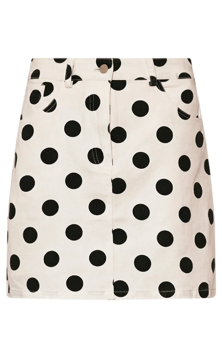 Kort nederdel fra Noella i hvid med sorte prikker.