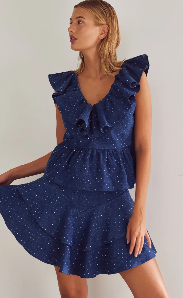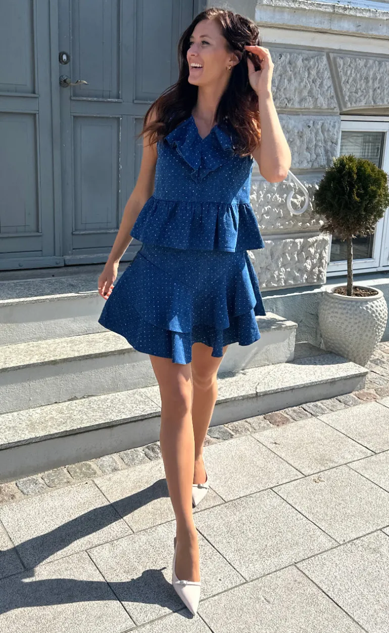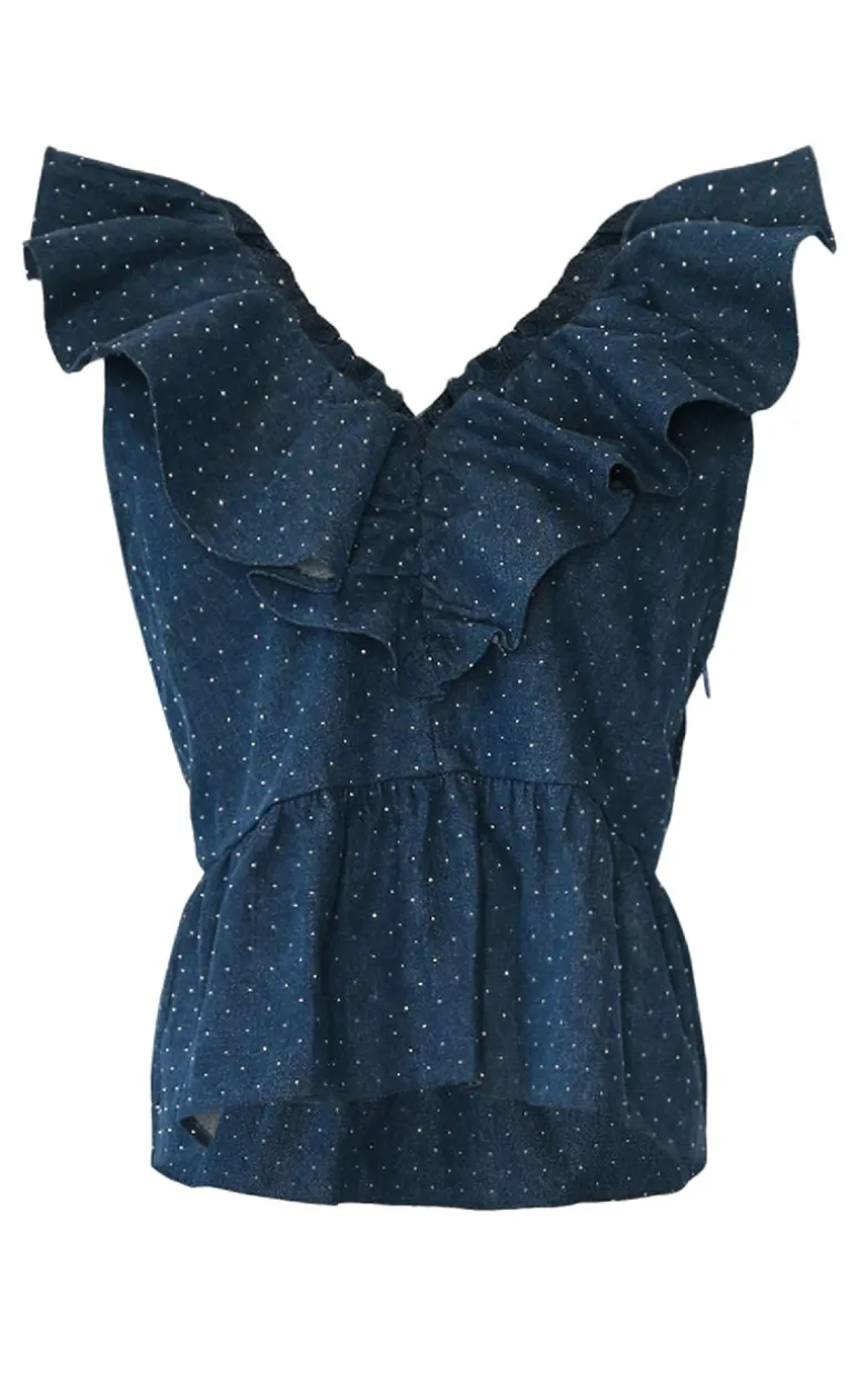 Prikket top fra Noella i blå og hvid.