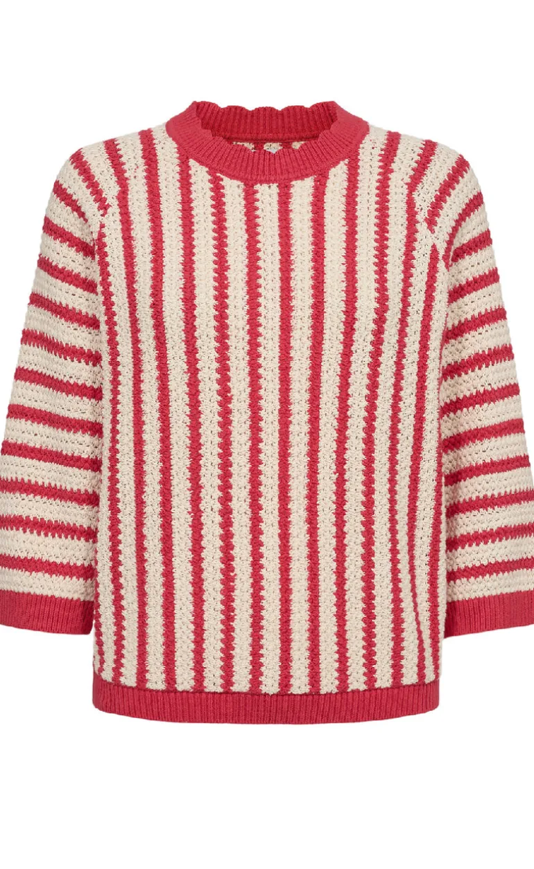 Strik pullover fra Nümph i et rød og hvid stribet print.