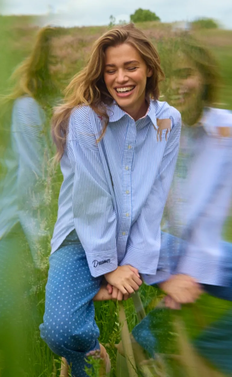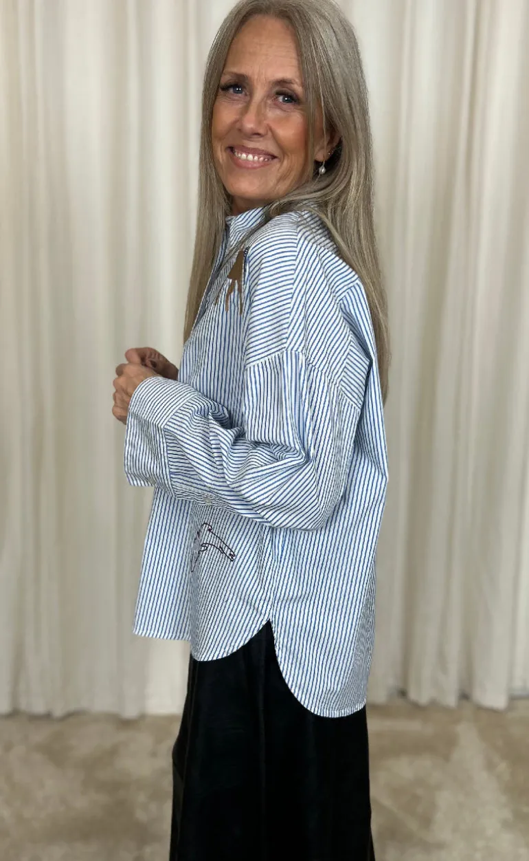 Flot skjorte fra Nümph i et blåt og h vid stribet print.