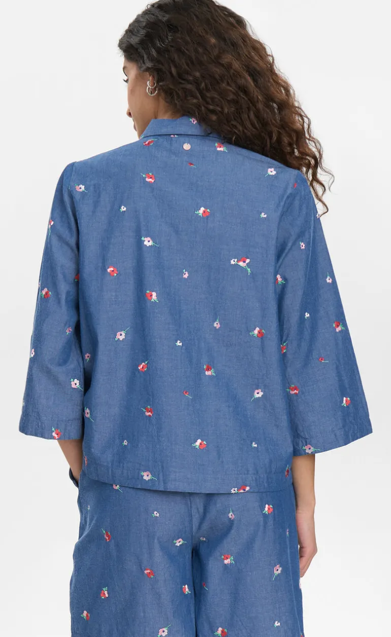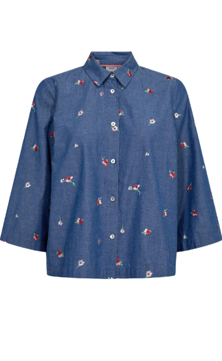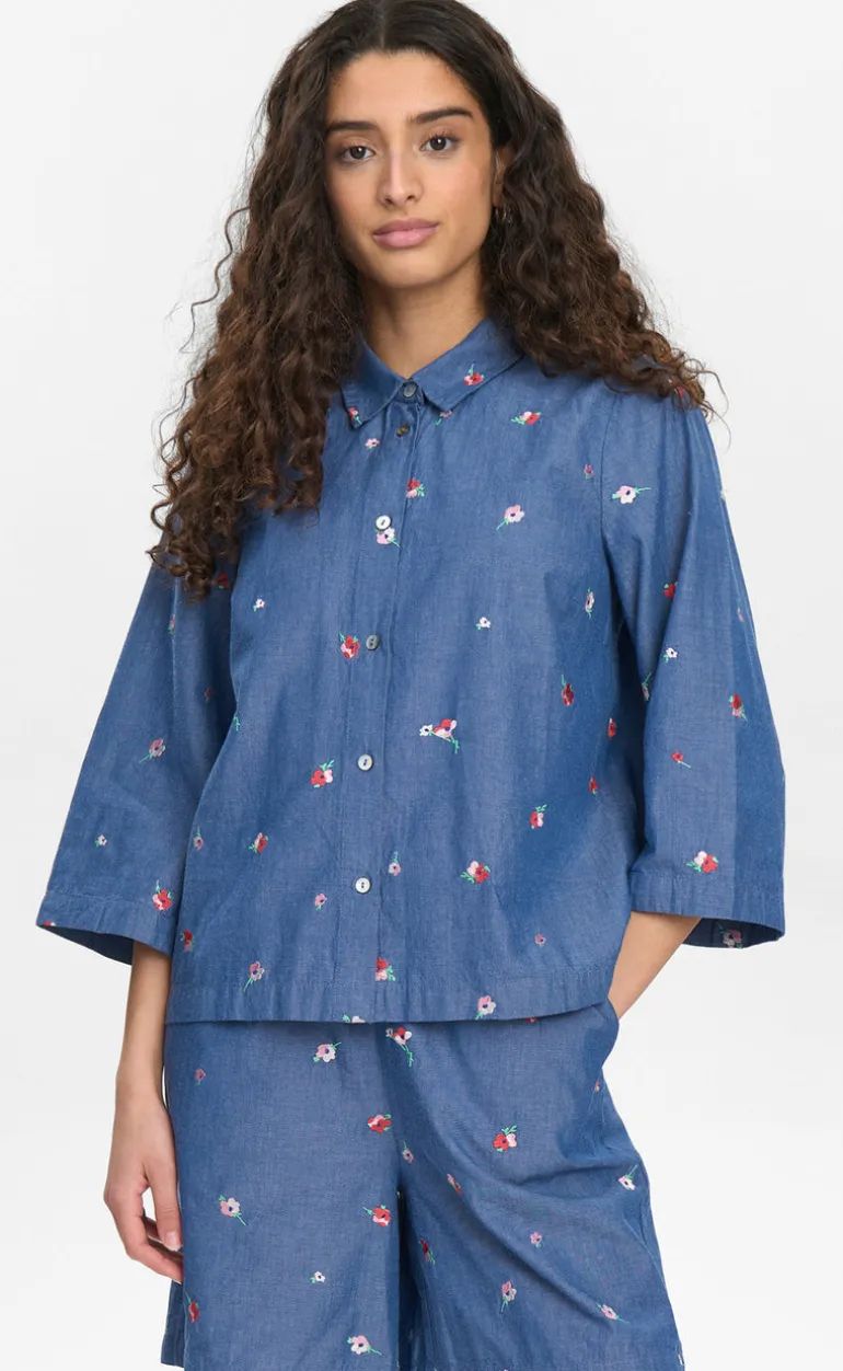 Sød og flot skjorte fra Nümph i blå med broderede detaljer.