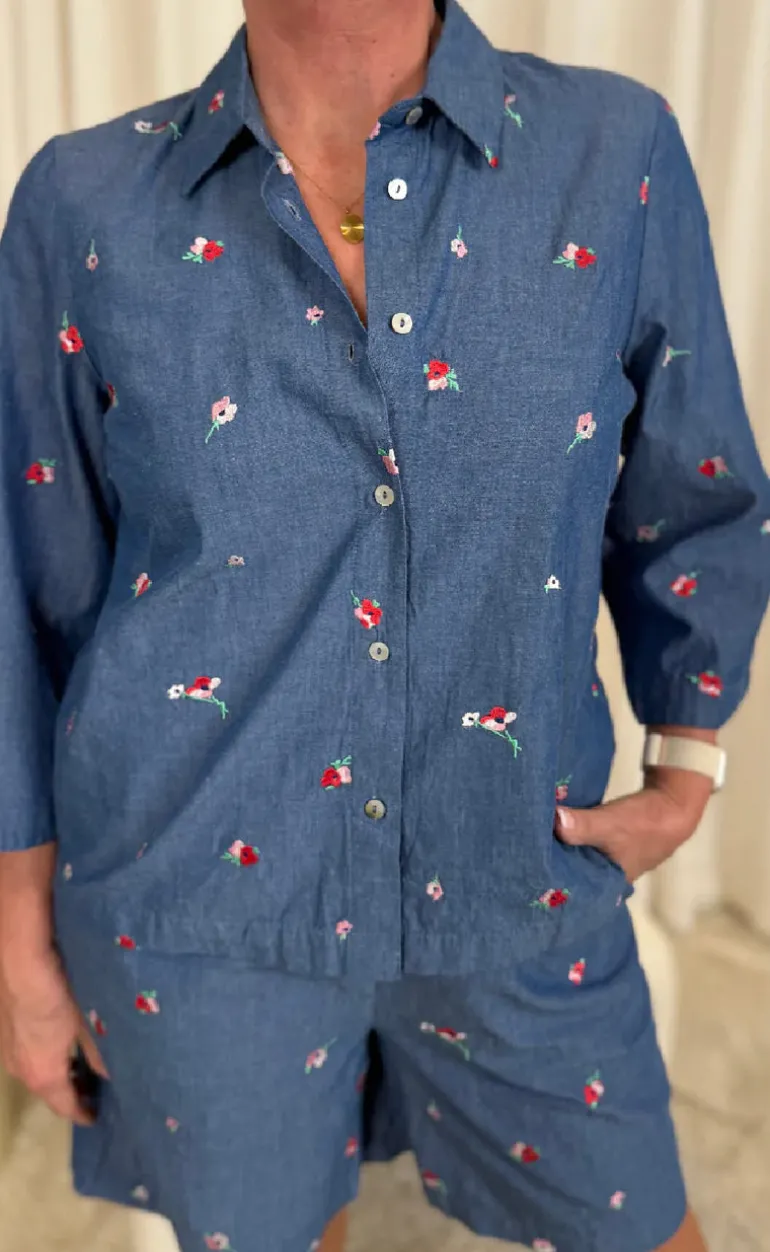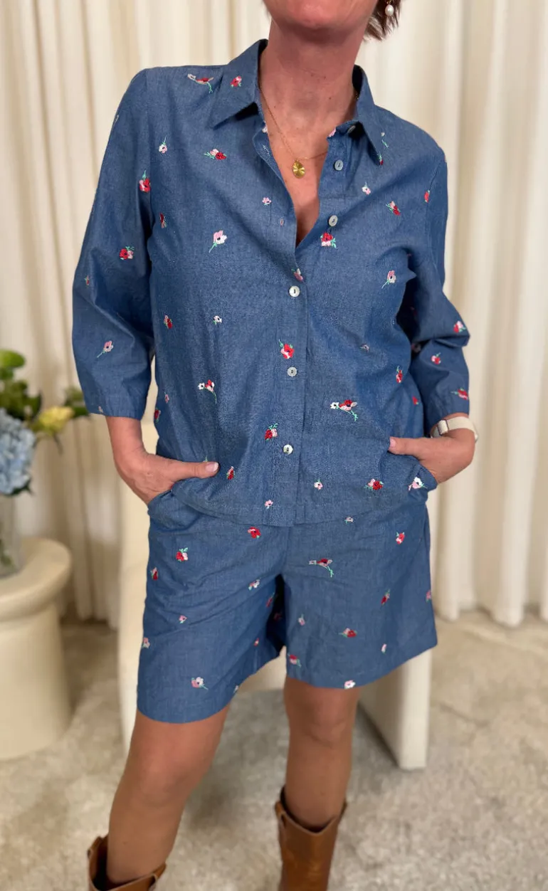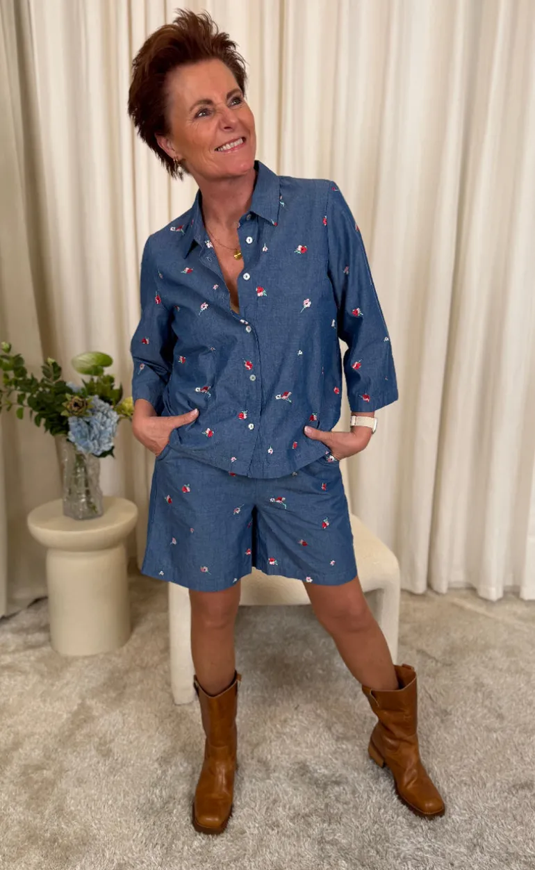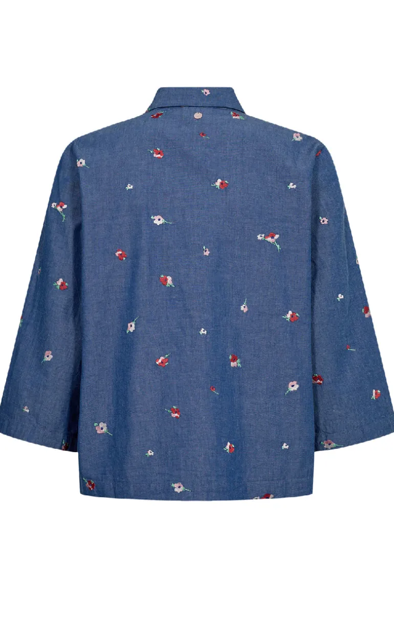 Sød og flot skjorte fra Nümph i blå med broderede detaljer.