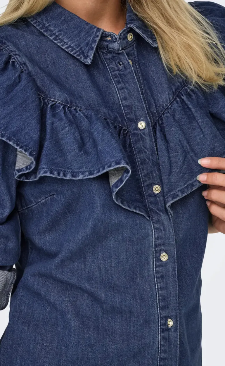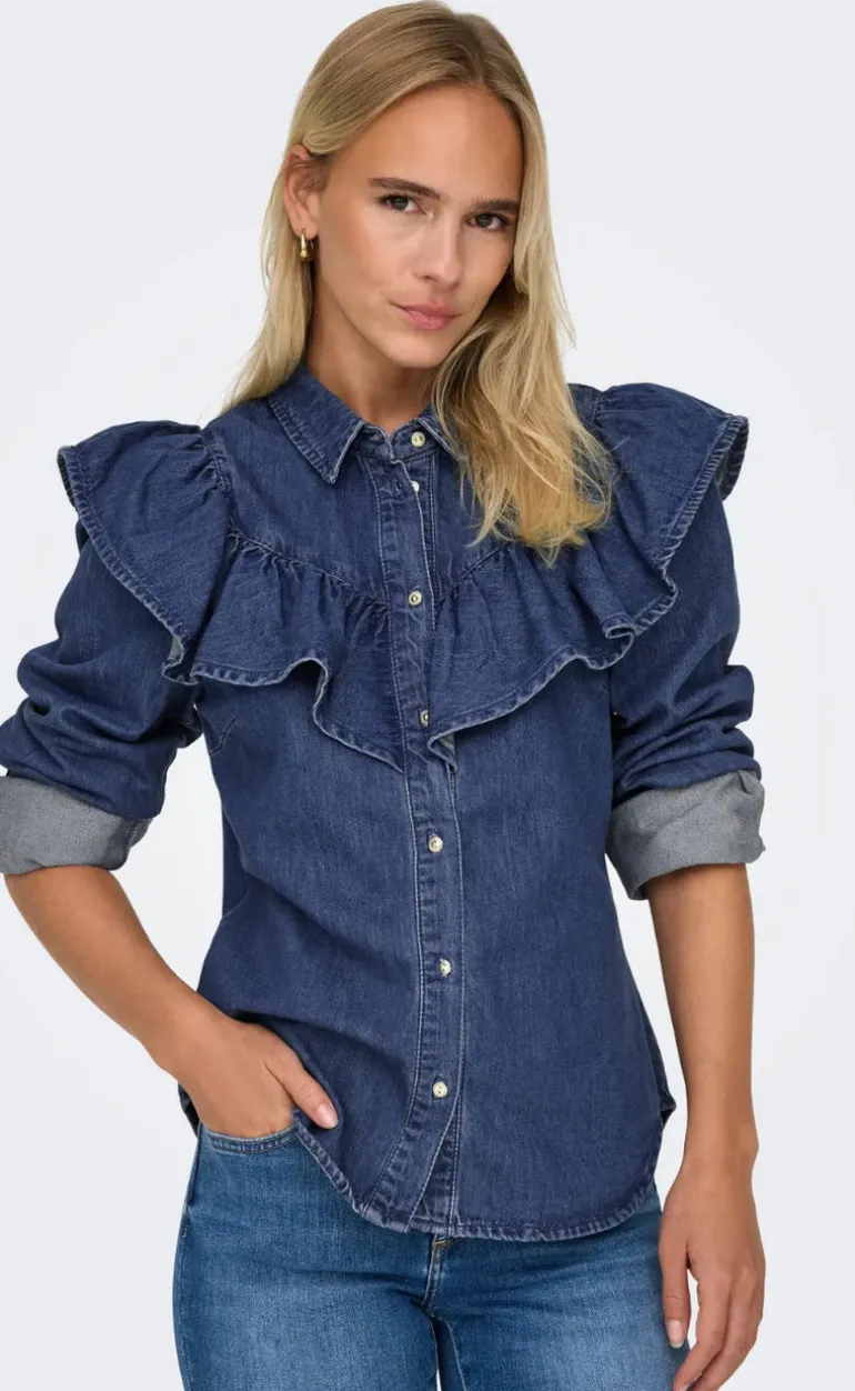 Style nummer: 15297988-ONLINDIGO LS FRILL DNM SHIRT QYT NOOS