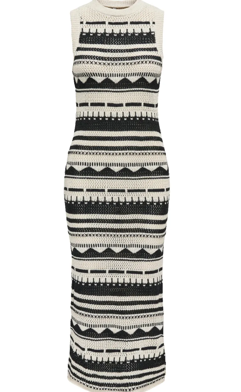 Maxi strik kjole fra ONLY i et stribet print og med et tætsiddende fit.